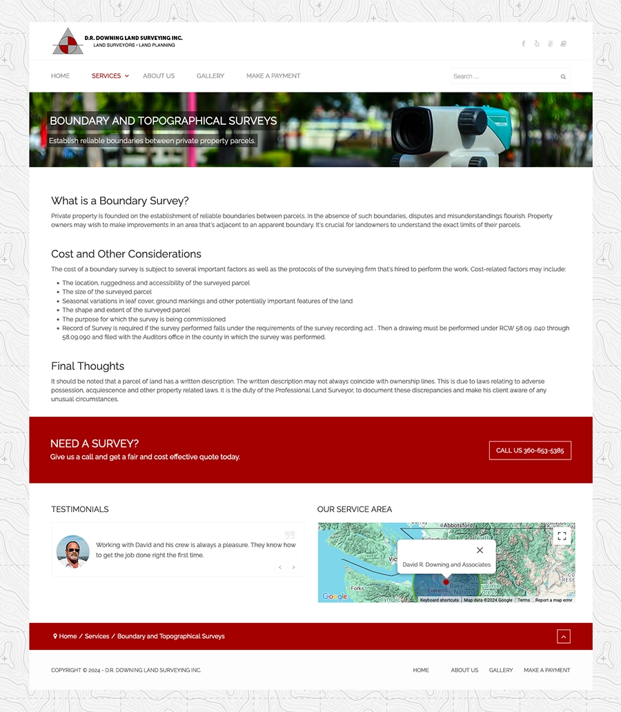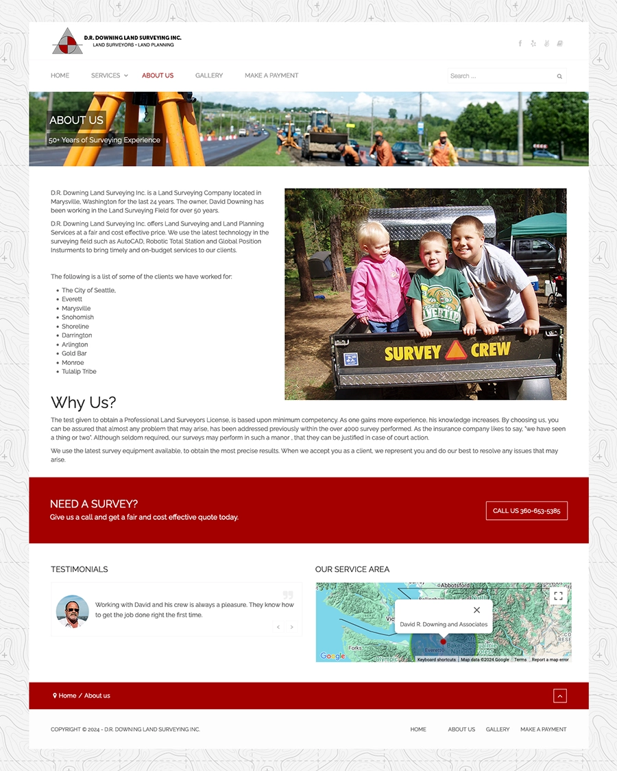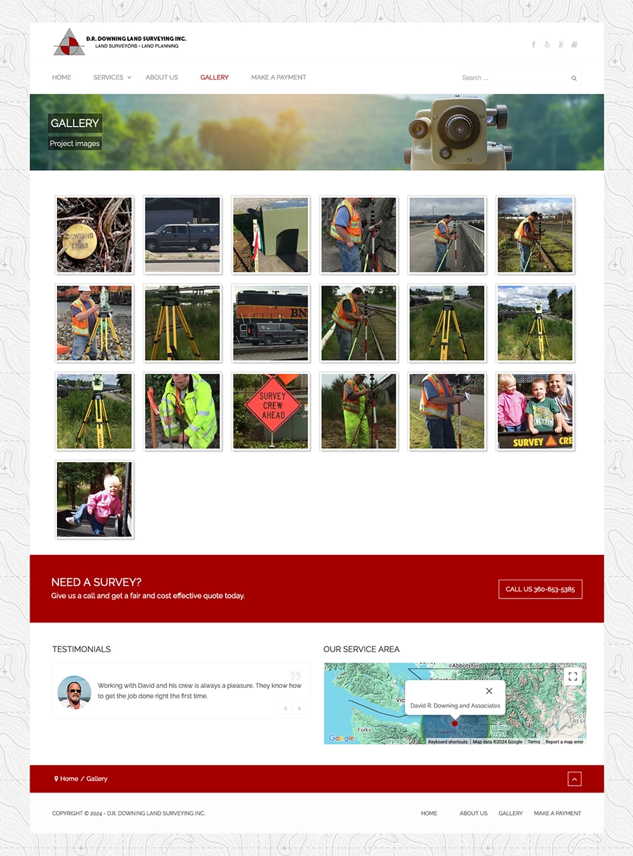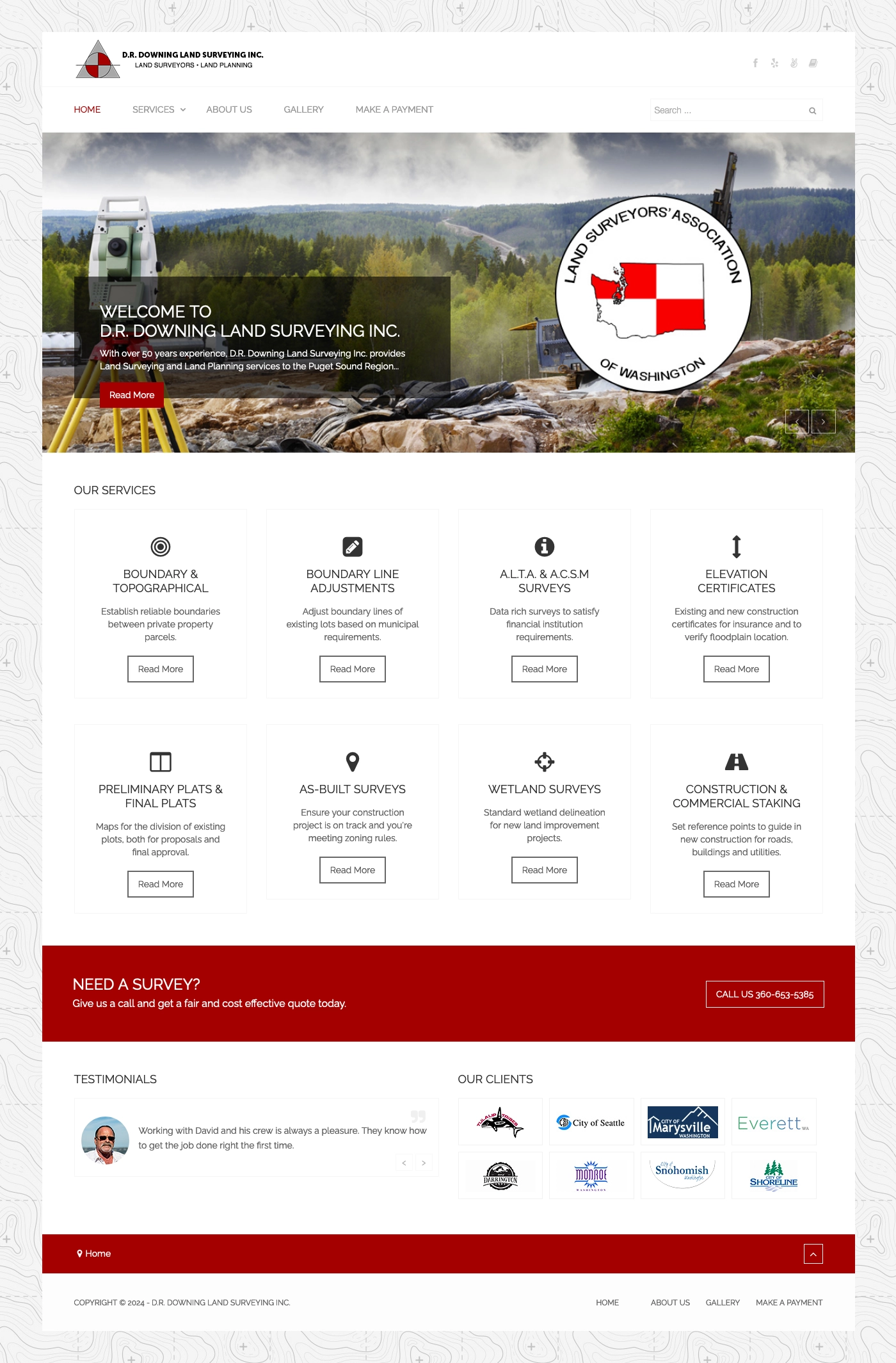 D.R. Downing Land Surveying Inc is a trusted surveying business serving the Marysville, WA area. They required a modern, professional website that effectively outlined their services and enhanced client interactions. We developed a new site on Joomla 3 that showcases their expertise, facilitates online payments, and provides a polished digital presence for the company.