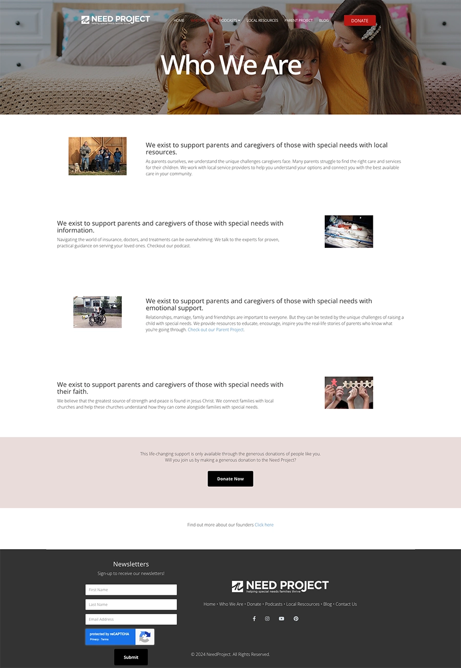In addition to the redesign, we provide concierge support for Need Project, ensuring their website remains secure, updated, and fully functional. Our ongoing maintenance allows Need Project to continue focusing on its mission of supporting families without worrying about technical upkeep.