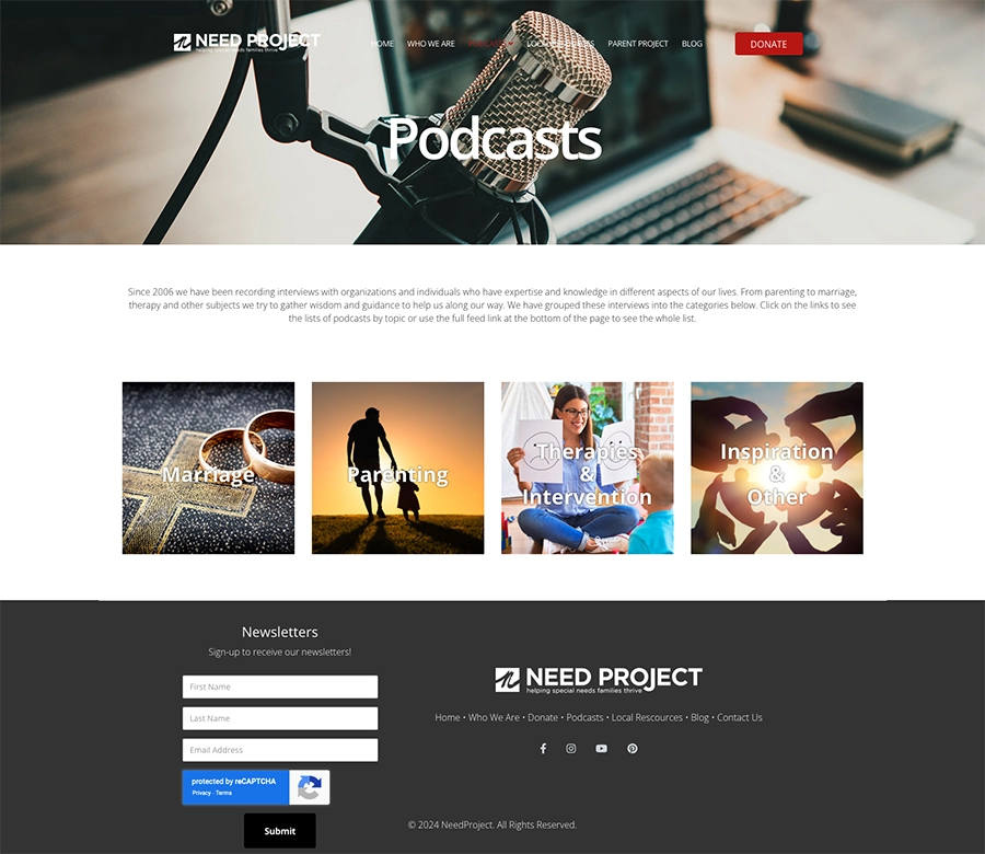 Originally built on Joomla 3, the Need Project website required a modern, user-friendly overhaul to better serve its mission as a non-profit. We transitioned the site to Joomla 4 and implemented RS Directory to organize and manage resource listings, making it easy for families to locate services specific to their needs. A key part of this project was the migration of Need Project’s expansive library of podcasts and videos, consolidating all content onto one platform for straightforward access and improved user experience.