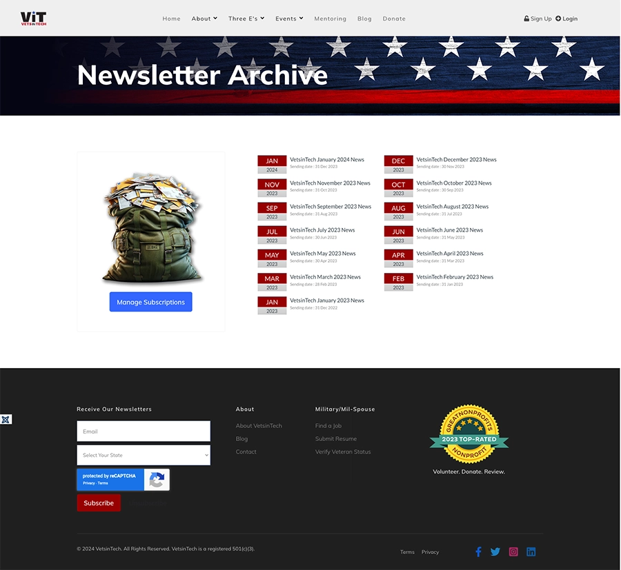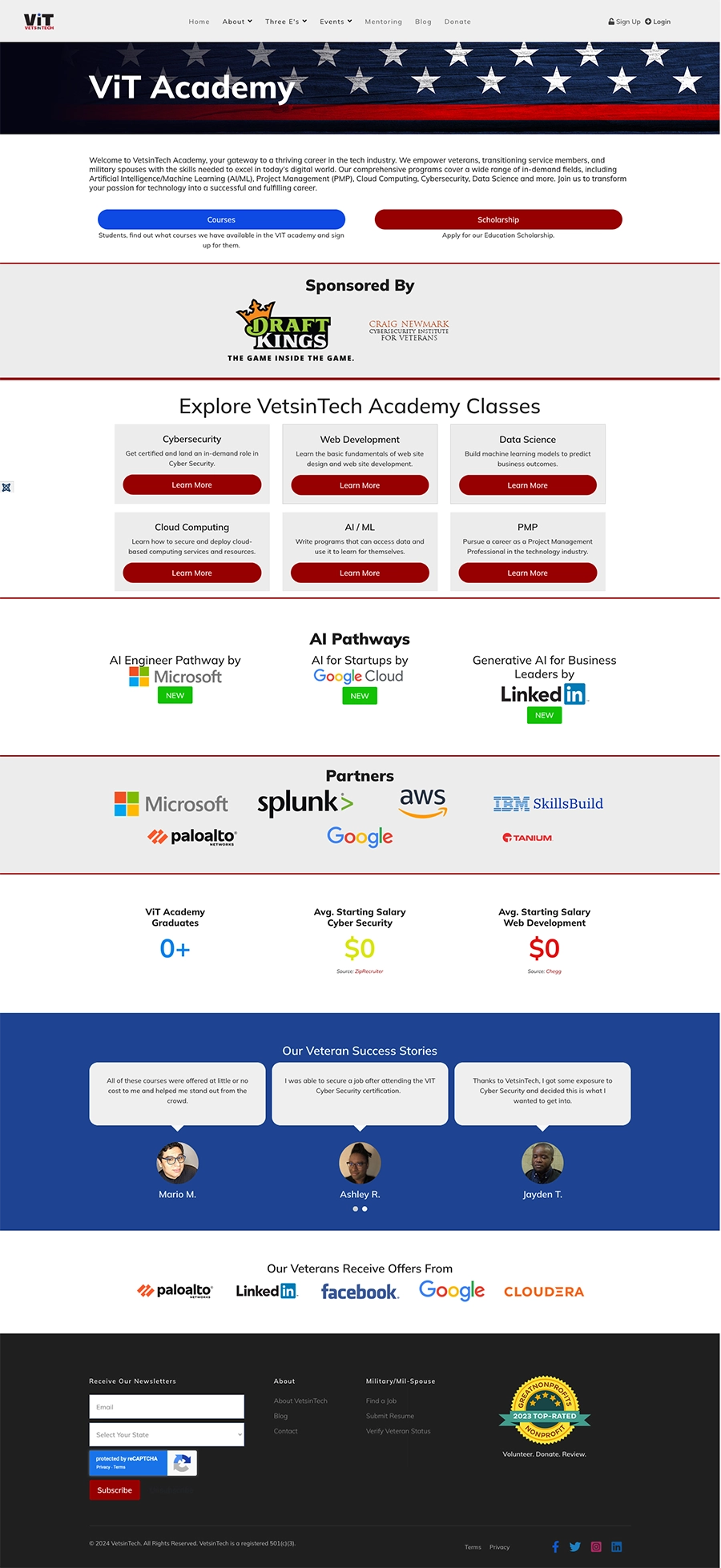 VetsinTech (ViT) is an organization dedicated to supporting veterans as they transition into tech careers. Initially, we helped ViT by rebuilding their old WordPress site on a modern WordPress version, incorporating tools for job listings and resume submissions. As ViT’s needs evolved, we transitioned their site to Joomla 4, implementing advanced integrations and custom functionality to better serve their veteran community.
